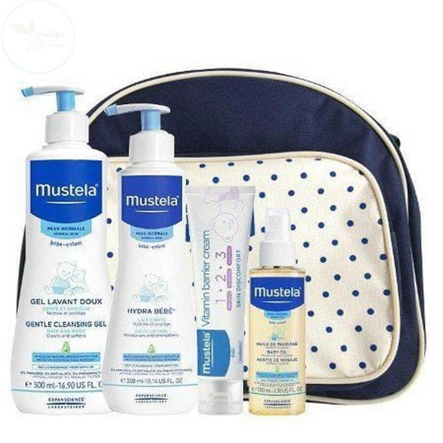 Mustela Dermo Cleansing Şampuan 500 ml + Mustela Hydra Bebe Losyon 300 ml + Mustela Vitamin Barier Pişik Kremi 50 ml + Mustela Masaj Yağı 100 ml