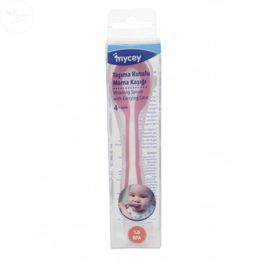 Mycey Taşıma Kutulu Mama Kaşığı - Yumuşak Uçlu - Pembe